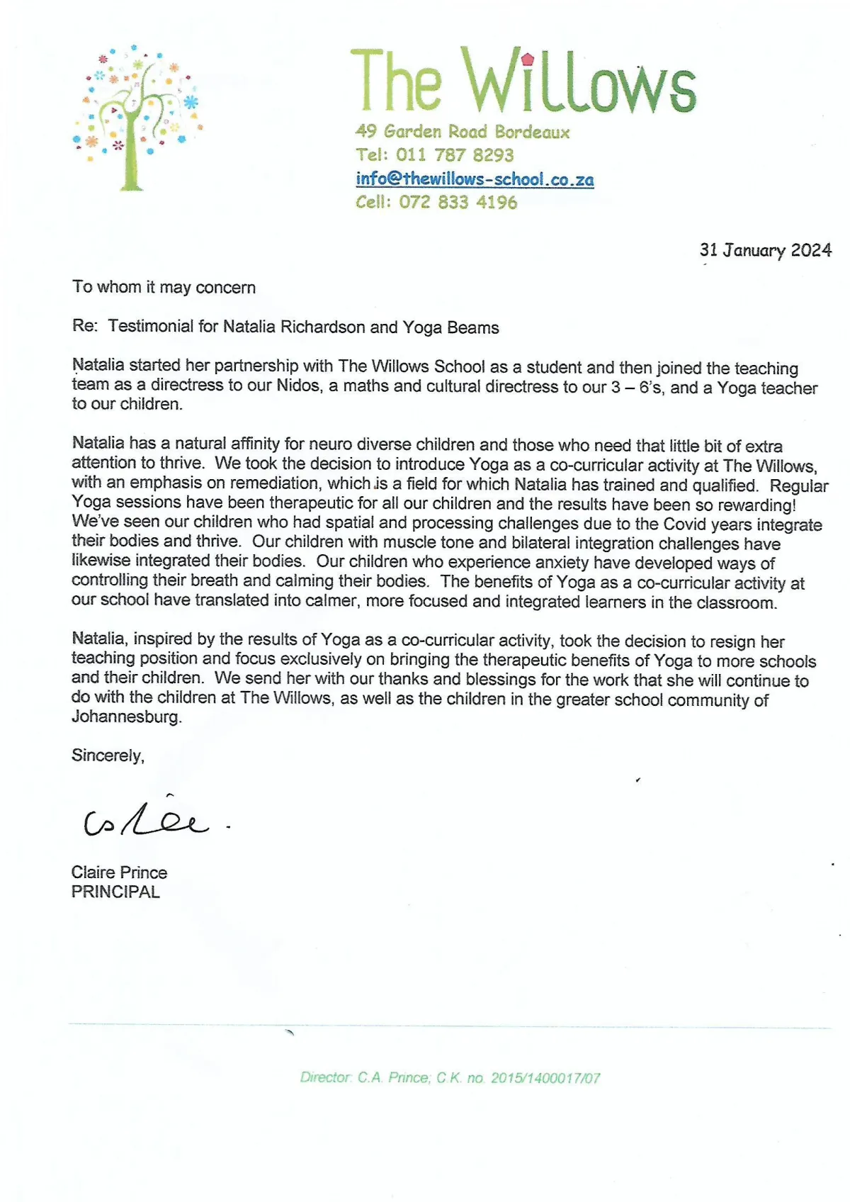 She is the founder of Yoga Beams, a wellness initiative that offers tailored yoga and mindfulness programs for children and families.